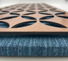 A truly classic Mid Century Modern styled piece with beautiful colored fabric that takes you back to the 60’s. The wood cut out designs are stained in a rich Walnut and are displayed over a textured colored fabric to give the art dimension. Pair it with two or three pieces together to create a statement piece on your wall.